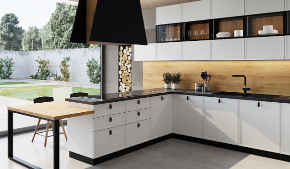 В бренда «Кухонный двор» вы сможете купить кухню из натурального массива дерева и качественного МДФ. Здесь представлены белые гарнитуры в разных стилях.