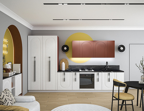 Модель Арко, представленная осенью 2025 года, стала одной из самых заметных премьер года. Наша гордость! Она соткана из лучших образцов архитектуры Средиземноморья: из арок древних амфитеатров, фасадов венецианских палаццо с арочными окнами, мягкого контраста камня и тёплой терракоты. Арки изящно смягчают строгую геометрию и формируют современный, выразительный облик кухни. Идеально как для открытых пространств, так и для камерных планировок.